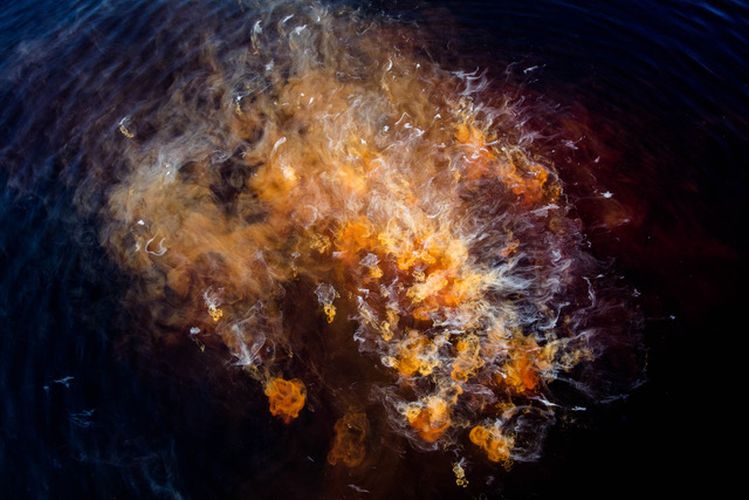 For her series Sphere of No Thingness, Kali photographed thousands of images of mud in a dam. From this series, one image—lava-like in form—was chosen for the cover of A Political Love. She writes: