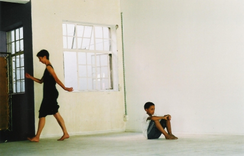 The venue was on the top floor, an open loft space on Buitenkant Street opposite the city police station. My friend and fellow performance artist Wilhelm Hahn helped to design the space. He collected vinyl floor strips (made in China) from a township and laid out the floor with these. There was also a very homely oval mirror against the wall which reflected our dance for any position in the room.