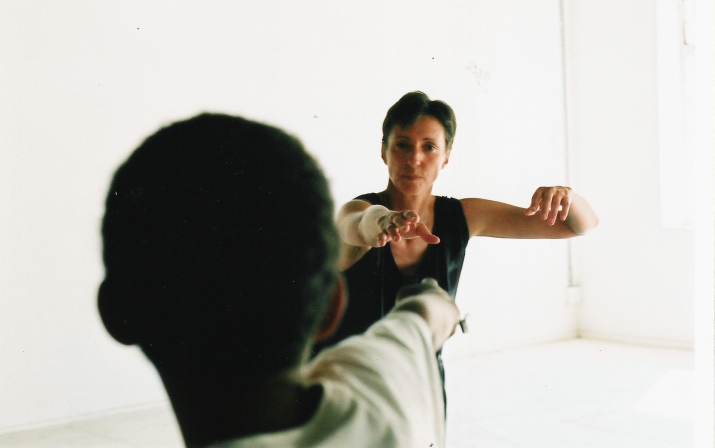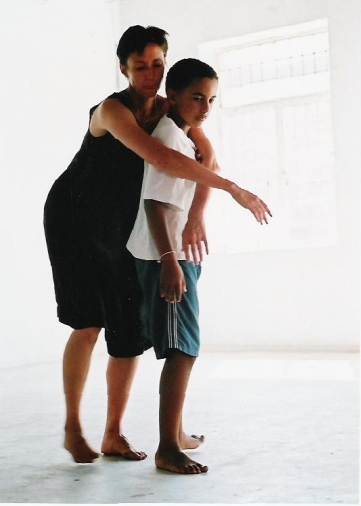 This was the structure of the performance: The spiral of eight dances to the eight pieces of music began to explore the mother-child relationship. It began pre-conceptually, pre-birth, aware of a presence in waiting ‘to come down.’ Then it moved into the uterus, then birth, toddler, the exchange of soul-care more conscious now, and then a celebration of our relationship. Without any of these stages being spelled out to Luyolo, and the incredible care with which the improvisation and choreography were directed, the spiral curled out into a form of individuation.