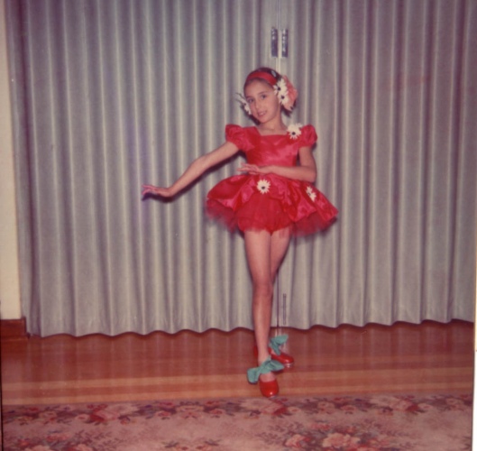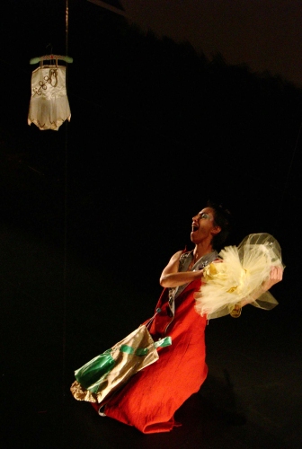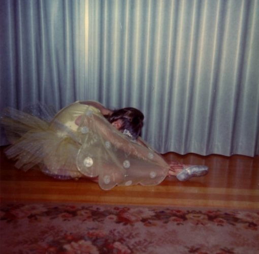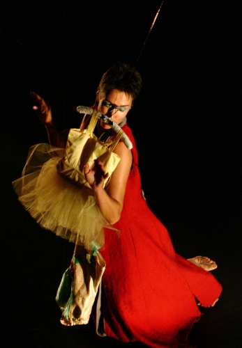 Then he left the camera on the floor over me. He took one of my childhood items, a red tap shoe, listened to its clack and walked off stage with this sound, while photographs of myself in childhood costumes would be projected onto the screen above the performance.