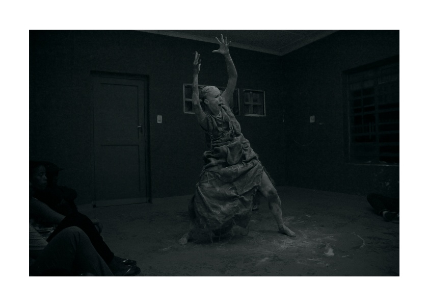 My friend Charl Pienaar drove us, Guy De Lancey my photographer and Bethany Reivich an international student in shamanism/mysticism and performance into the township. People were washing clothes - soapsuds on the pavement - sweeping streets, children cutting across the road in swift motion, taxis were being washed. The sunset still felt open. At the dance/craft studio next to the gym, where we were not sure that we would have electricity, but was promised so because 'there is always power, nobody pays for,' we cleaned up, some, and began to move in. Some young children were hanging around making a noise. I asked them to leave the building. We set up some lights. Charl brought a flood-light and Mandla a ball-shaped garden light on a pole. The flood-light was tied to a broken chair, and the ball-shaped light on its pole lay on the floor. Jerry was the local videographer who turned up late. He was averse to bending low to get floor shots, but somehow excited to shoot something I differentiated from sport as being 'artistic.'