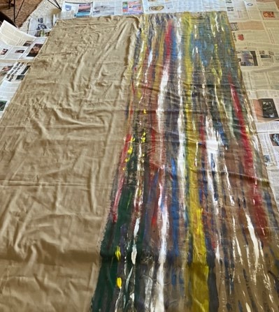 To meet the abject, I found a piece of brown canvas four meters long. I did not want to revert to abject as repulsive and therefore chose a dark colour, or earth, which we call “dirt” in a casual way. Soil is the kingdom of life and the sooner we tread and treat it as such, the better for humankind, and the more-than us. So, the idea of colour but carefully chosen colour entered along with the brown fabric.