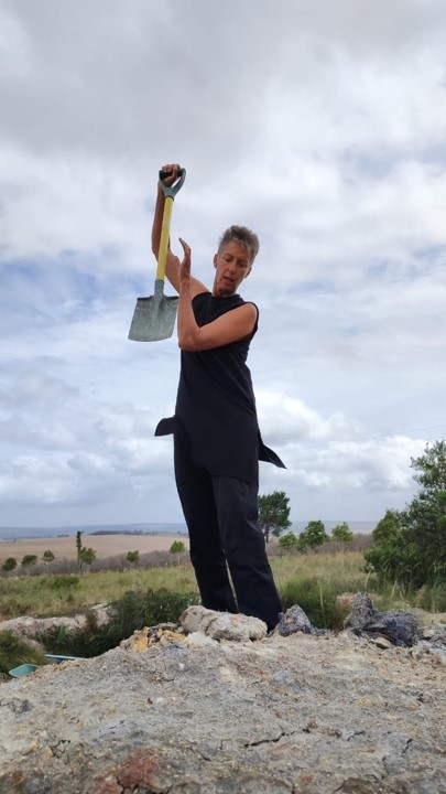 For ABJECT I dig up kaolin on the land of the videographer of this performance, Kali van der Merwe. These hard clusters of clay may withstand weather, but crumble quickly to powder when broken by hand.