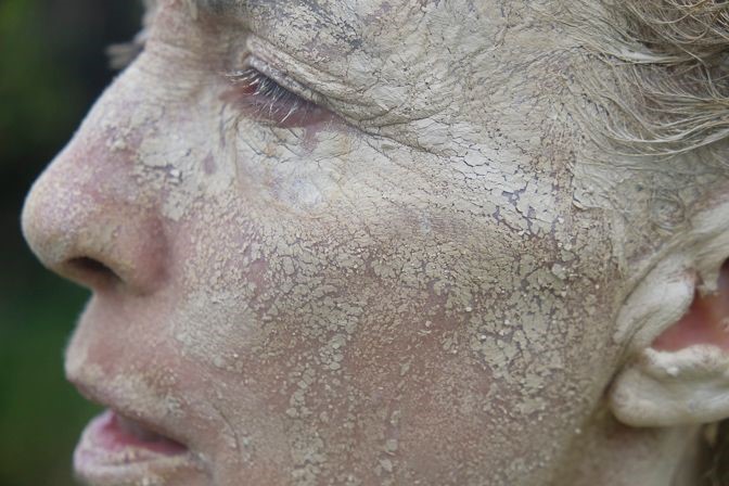 Since 1986 I have incorporated kaolin clay into my performances, always applying it to my body and specifically my face and head. In the first performance of Timeless Tango, I traversed the animal and human in the hunt to the demise of both. See the archived exposition here: Timeless Tango