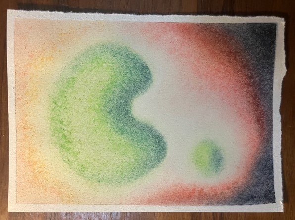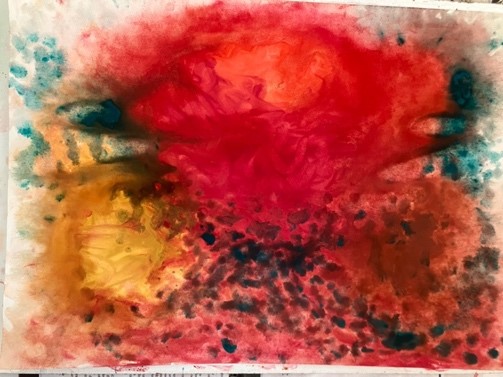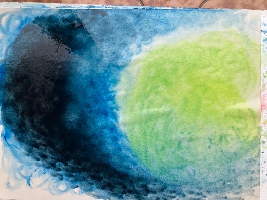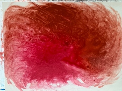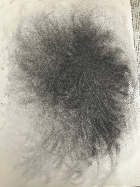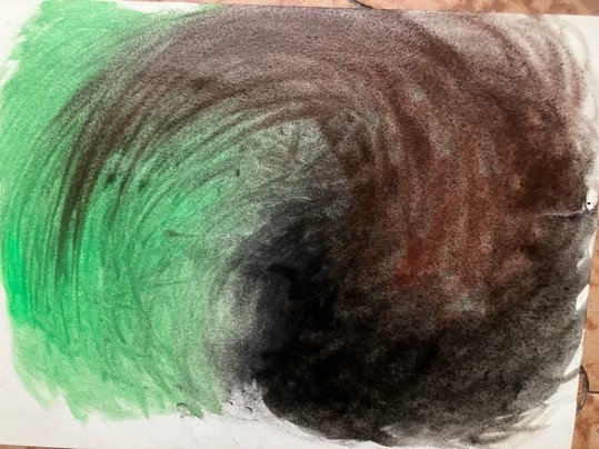 While in the generally perturbing and restless process of constructing a performance, reading or writing run randomly adjacent to the organicity7 of the field I embody. Further, the symbol of the word – writing – collapses intermittently in the unfolding of an incessantly dubious entity such as abject. Then I do very simple artistic practices, either with pastels, paint, pencil or clay. One could imagine it being a movement exercise for which I produce a visual representation at the end of it. This is often revealing of my condition and understanding in ways that I would not have been aware of without art. I often display this for my viewing and sustain a meditation on these products supplementing my quest for deeper encounters with the phenomenon I investigate.